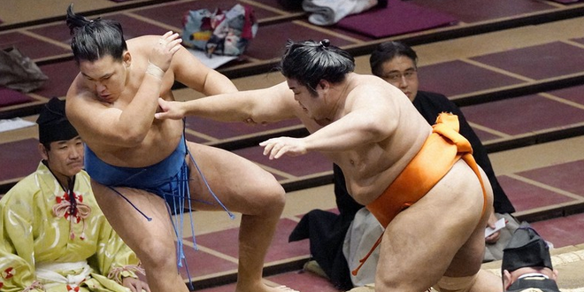 Lors de la rencontre des maegashira 11, tous deux affichant le score de 2-8, c’est Sadanoumi, pourtant blessé qui a fait preuve d’agilité face à Enho qui pourtant n’en manque pas.