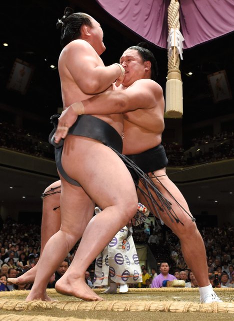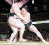 It has been a largely disappointing tournament for the other two ozeki, however, and Kotoshogiku had no answer for Bulgarian bulldozer Aoiyama (7-4) and got blasted out of the ring with alarming ease to take a sixth defeat.