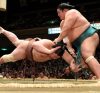 Winner of a record 34 career titles, the Mongolian timed his decisive move to perfection in the day’s final bout at Ryogoku Kokugikan, breaking free from a stalemate and sending Terunofuji (8-3) down with a textbook pulling overarm throw to stay tied for the lead at 10-1.