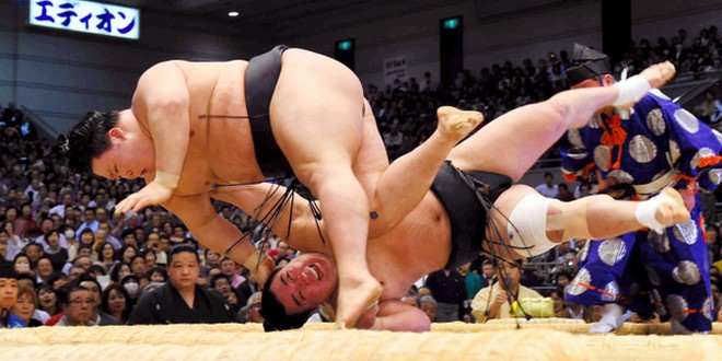 Meanwhile, Kotoshogiku’s bid for promotion to grand champion is almost certainly over as he went flying to the dirt after the charge in his bout against Mongolian ozeki Terunofuji. Both men have 7-4 marks.