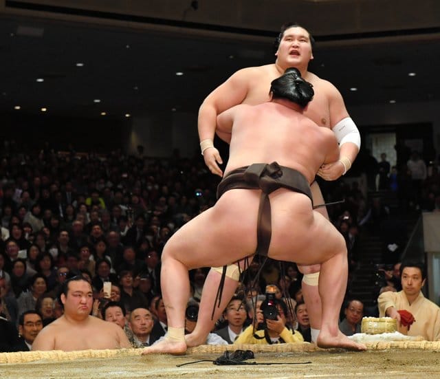 Chinese-born No. 10 maegashira Sokokurai also kept himself in the thick of the title race with a hard-fought yorikiri win over 12th-ranked Takakeisho (4-7), before Takanoiwa dodged a bullet to shove out sixth-ranked Chiyoshoma (5-6).