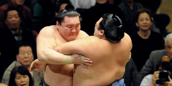 Kakuryu a obtenu une huitième victoire confortable après 10 jours de combats à l’issue souvent incertaine. Le mongol a pris en tenaille les 1,94 mètres du brésilien Kaisei qui n’a manifesté que peu de résistance.