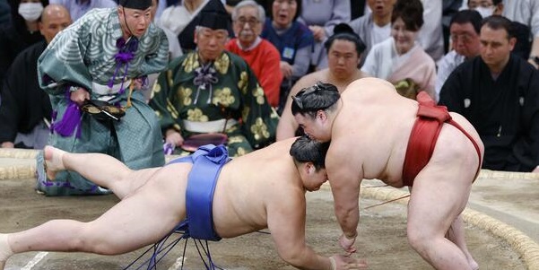 Après avoir infligé sa première défaite à Onosato mardi, Yoshinofuji a surpris Aonishiki en le mettant à bas en quelques secondes, confirmant ainsi son potentiel offensif. Alors qu’Aonishiki tentait son coup bas signature, Yoshinofuji a submergé son adversaire avec de puissantes poussées à la gorge et à l’épaule, infligeant une défaite rare au sekiwake. Son seul échec précédent ce mois-ci remonte à une henka inattendue de Wakatakakage lors de la cinquième journée.