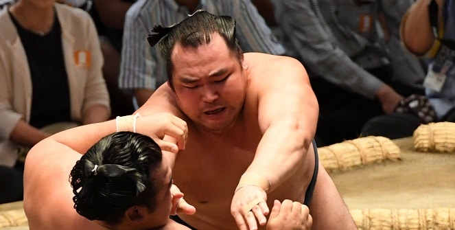 In their first matchup, Mitakeumi survived a scare against No. 4 Meisei (2-9). They stood locked in a lengthy stalemate at the edge before Mitakeumi swung the 150-kg Meisei out of the ring.