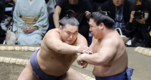 En compétition dans l’élite pour la première fois depuis mai 2021 en raison d’une longue suspension pour avoir enfreint les règles du coronavirus, Asanoyama a infligé à son adversaire en titre et maegashira 6 Meisei sa troisième défaite. Après avoir saisi en double prise le dos de la ceinture sous les bras d’Asanoyama, Meisei a ramené l’ancien ôzeki vers la paille, où il semblait être au bord de la victoire. Asanoyama, cependant, a parfaitement chronométré un pivot subtil vers sa gauche juste au moment où Meisei tentait une attaque frontale. Asanoyama a baissé son épaule gauche, a poussé avec sa main droite et a tordu son adversaire pour le vaincre.
