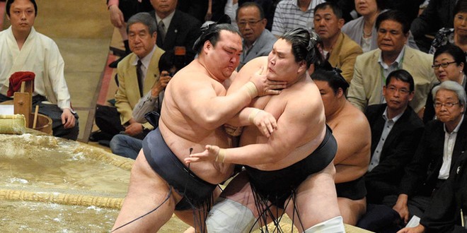Yokozuna Harumafuji became the only wrestler with just two losses, getting hold of the front side of Kotoyuki’s (5-7) belt with his right hand and forced the sekiwake out. The popular sekiwake appeared to stumble going out and was propelled backward through the air to a crash landing among the spectators.