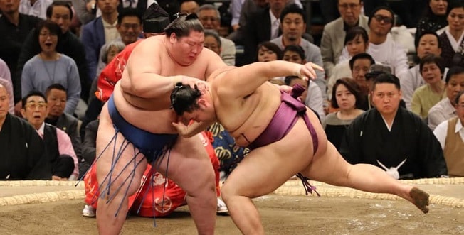 Pour le yokozuna mongol, qui affrontait l’ôzeki géorgien Tochinoshin, ce ne fut pas une partie de plaisir. La séance a tourné dès le départ au corps à corps, chaque lutteur mettant toute sa force et son poids pour déséquilibrer son adversaire. Pourtant et malgré l’impressionnante musculature de Tochinoshin, c’est bien le mongol qui a réussi progressivement à écarter le géorgien. Hakuhô reste invaincu, mais Tochinoshin stagne à 6 victoires, lui qui a besoin des 8 victoires pour ne pas être démis.