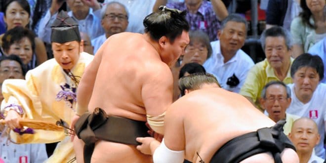 Dans les autres combats, l’ôzeki Goeido a profité de la charge lente de Ikioi pour remporter sans peine sa septième victoire.