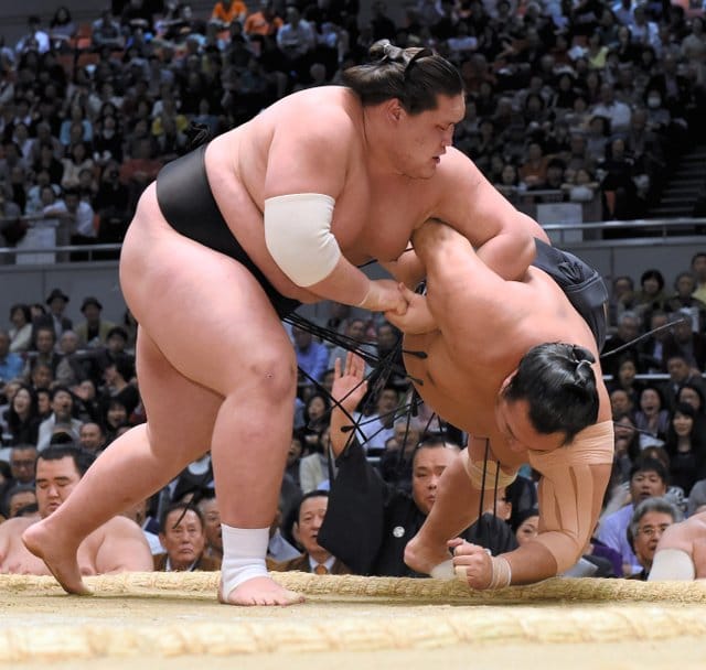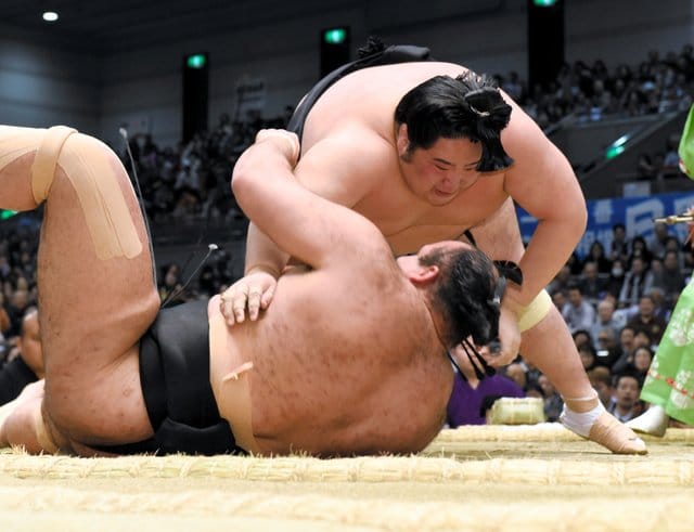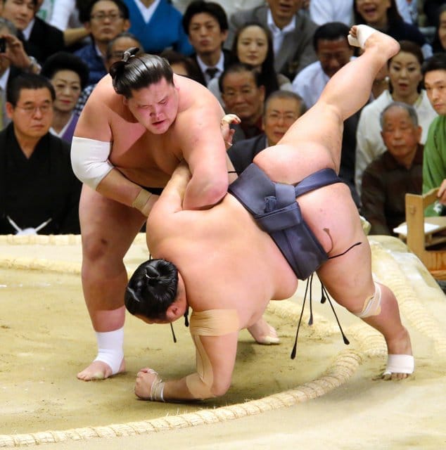 Elsewhere, Harumafuji, the only other yokozuna in action here following the opening-day withdrawal of Kakuryu, was given a run for his money but improved to 9-3 after taking down ozeki Goeido (6-6) with an underarm throw.