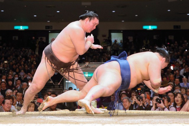A 37 ans, l’aîné de la division makuuchi Aminishiki a bousculé le sekiwake Yoshikaze pour obtenir sa cinquième victoire. En raison de la grippe, le maegashira 1 a manqué deux journées du championnat.