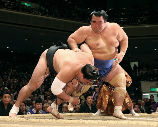 Kotoshogiku faces seventh-ranked maegashira Toyonoshima on Friday. He is 26-12 in the head-to-head series between the two at grand tournaments.