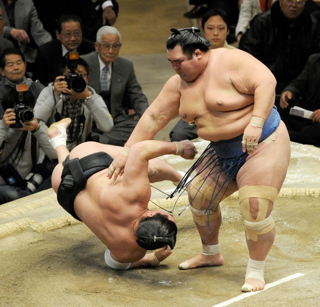 L’ôzeki Kotoshogiku a terrassé Harumafuji jeudi en renversant proprement le yokozuna et conserve exclusivement la tête du classement. Dans la dernière ligne droite du tournoi, les chances pour Kotoshogiku de remporter un premier titre pour un lutteur japonais en 10 ans s’accroissent.
