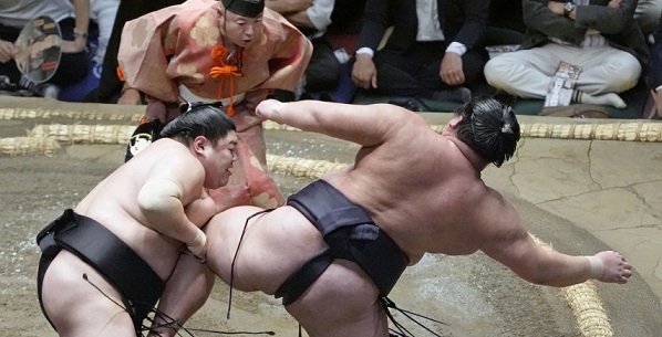 L’ôzeki Hoshoryu a battu un prétendant au championnat pour la deuxième journée consécutive de manière stellaire. Un jour après avoir renversé Onosato d’un superbe lancer, le neveu de l’ancien yokozuna mongol Asashoryû n’a fait qu’une bouchée de l’ancien ôzeki Mitakeumi en yorikiri. Mitakeumi, maegashira 7, avait chargé en avant dans une prise de ceinture par le bras droit et s’est retrouvé à la merci d’Hoshoryu, qui a utilisé l’effet de levier pour le forcer à reculer hors du dohyô.