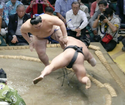 Le puissant Onosato a démontré son agilité en se déplaçant latéralement et en terrassant Hakuoho, coupant l’élan de ce dernier dans son meilleur début de compétition depuis ses débuts en makuuchi en janvier dernier. S’il bat son collègue ôzeki Kotozakura vendredi, Onosato remportera sa quatrième Coupe de l’Empereur et sera promu au plus haut rang du sumo, deux jours avant la fin du tournoi.