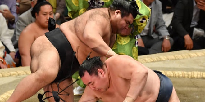 Sekiwake Ichinojo, who missed four days due to an injury, improved to 4-6-3 winning with an armlock throw against No. 8 Endo (5-8).