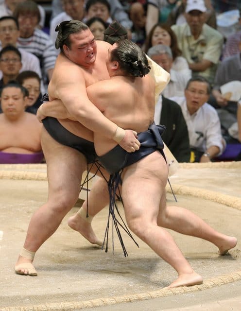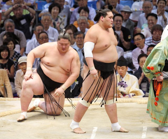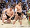 In other bouts of note, Kotoshogiku (6-7) kept alive his hopes of retaining his ozeki rank by bellying out Brazilian No. 3 maegashira Kaisei (5-8).