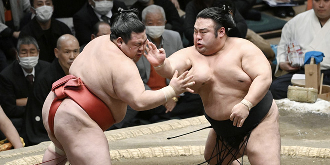 Le komusubi Wakamotoharu (7-6) s’est lui imposé face au n ° 6 Hokutofuji (7-6).