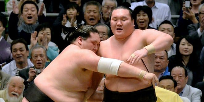 Harumafuji atteint sa dixième victoire sans la moindre difficulté en sortant Kisenosato. Le yokozuna a saisi à la gorge l’ôzeki tout en le forçant à reculer.