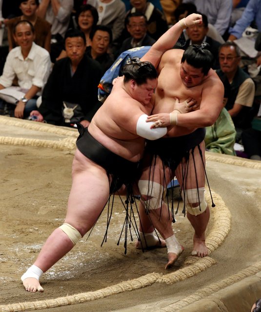 On Sunday, Hakuho faces Harumafuji, who comfortably dealt with ozeki Kotoshogiku (6-8) and condemned him to a losing record. Kisenosato’s next bout is against Kotoshogiku, who holds a 30-23 edge against his ozeki rival.