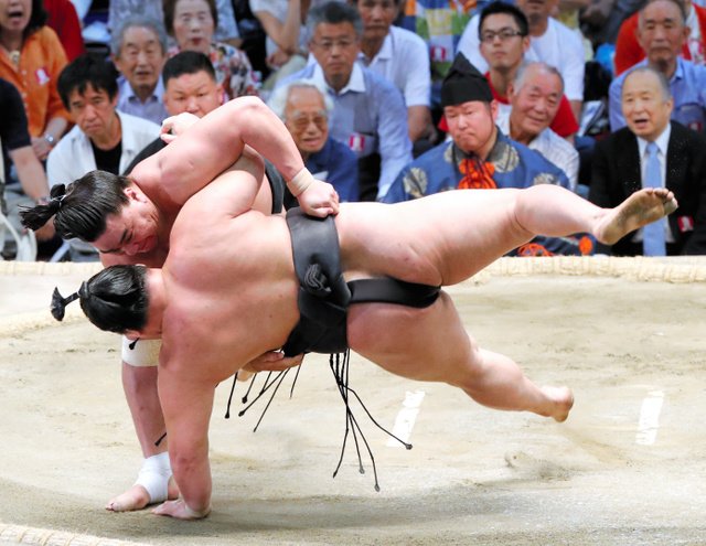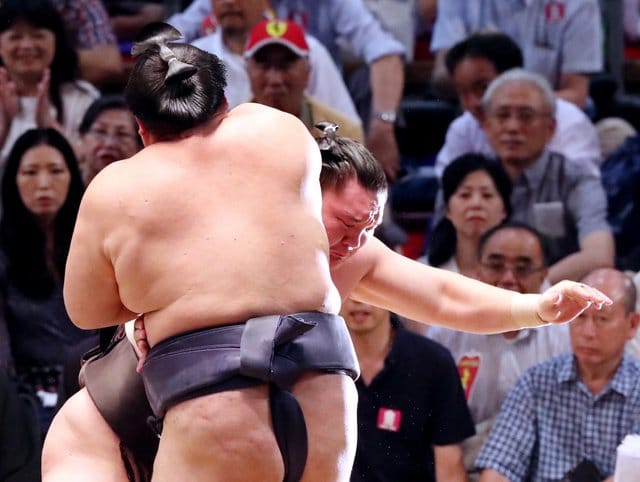 With two bad knees, Terunofuji has been vulnerable to wrestlers who could get around him, but Takayasu defeated his larger opponent by coming straight at him in a flawless effort.