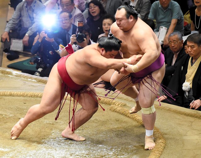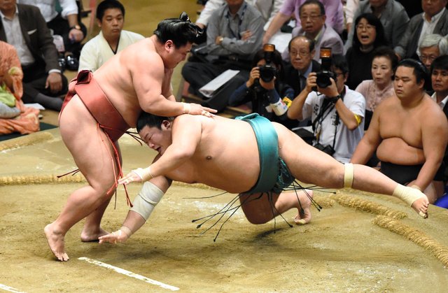The 23-year-old went against the advice of stablemaster Isegahama to rest and made the decision to battle on, but he never looked a threat against Goeido, who forced the Mongolian out to level his record at 7-7.