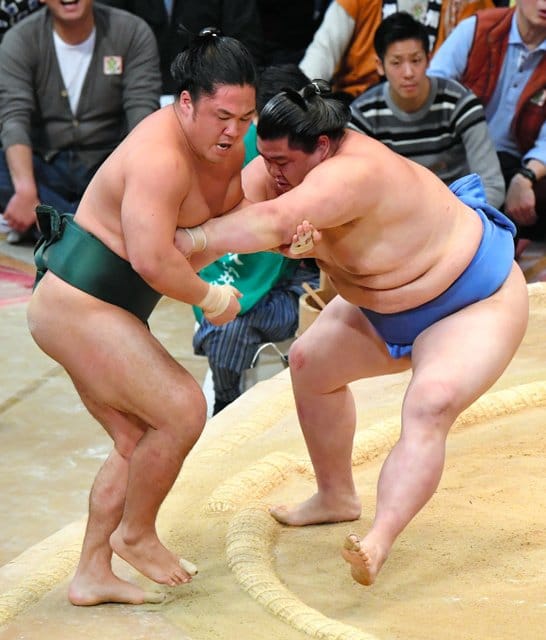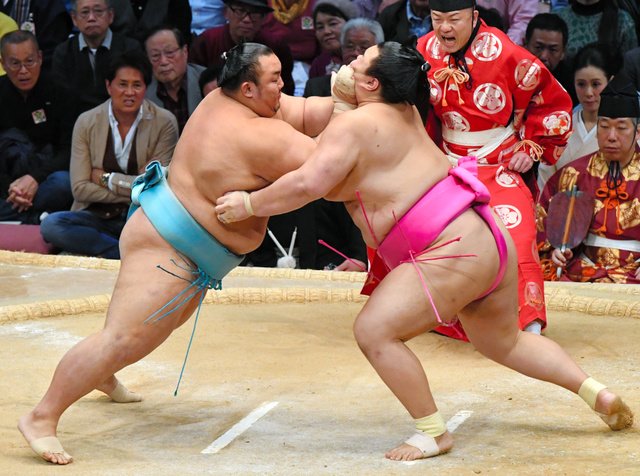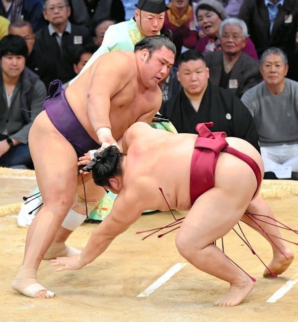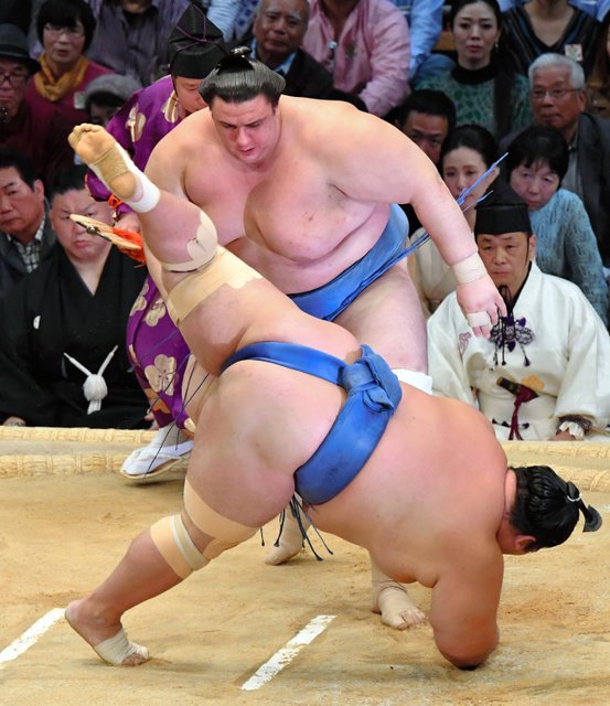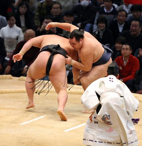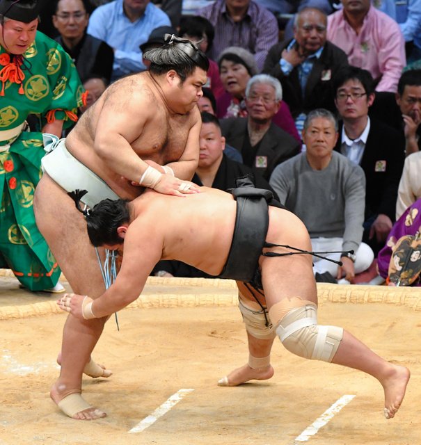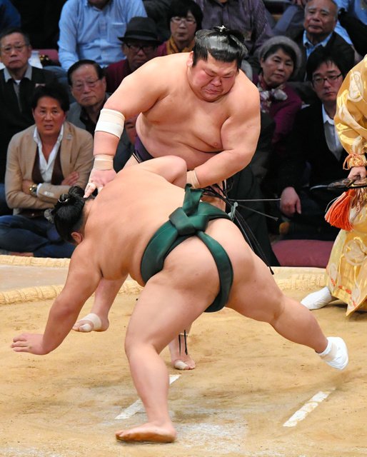 Elsewhere, ozeki Kotoshogiku continued to look like a pale shadow of the wrestler that pulled off a stunning championship win at the New Year meet, getting quickly slapped down at the charge by Bulgarian No. 1 maegashira Aoiyama. Both wrestlers have 4-10 records.
