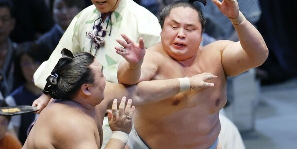 Onosato, débutant chez les yokozunas, qui était hors course pour le titre avant de se présenter pour le dernier combat du jour, a mis de côté sa mauvaise habitude de reculer facilement et a continué à attaquer le sekiwake Wakatakakage pour une victoire unilatérale par oshidashi.