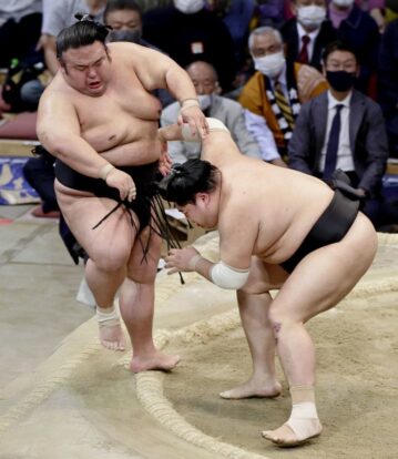 De son côté, l’ôzeki Takakeishô a maîtrisé le sekiwake Wakatakakage lors du dernier combat de la journée, secouant le champion du tournoi de Mars avec une gifle avant de le pousser à terre. La victoire a mis fin à une séquence de quatre défaites consécutives lors de leurs affrontements en tête-à-tête.