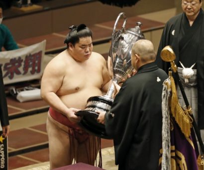 Superbe combat de Daieishô qui assure donc sa victoire du tournoi, et lui permet d’atteindre les 33 victoires sur les 3 derniers tournois ! La Nihon Sumo Kyokai ne validera pas une accession directe au grade d’ôzeki, puisqu’il faut d’abord être san’yaku pour pouvoir y prétendre. Au passage, Daieishô récupère un « shukun-sho », prix de la performance exceptionnelle, ainsi qu’un « gino-sho », prix de la technique.