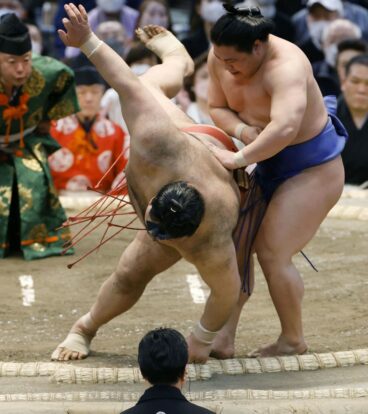 Derrière les hommes de tête ; l’ôzeki Mitakeumi a couronné un solide début au deuxième rang du sumo en devançant Takakeishô (8-7), qui a perdu quatre matchs de suite après avoir évité la rétrogradation avec sa huitième victoire lors de la 11e journée. Après avoir contenu la charge d’ouverture normalement puissante de Takakeishô, Mitakeumi l’a jeté sur la surface sablonneuse avec une projection au bras.