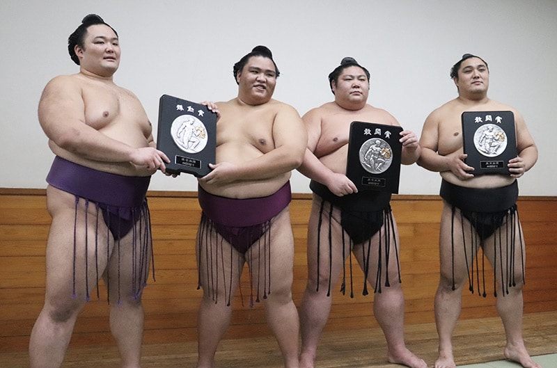 Un autre prix de la meilleure performance est attribué au maegashira 2 Asanoyama qui finit à 10 victoires. Le kanto-shô (prix du fighting spirit est attribué au maegashira 8 Okinoumi qui aura été dans le dernier trio de tête, ainsi qu’au maegashira 14 Tsurugisho, qui atteint lui aussi les 10 victoires alors que c’est sa première participation au niveau makuuchi.