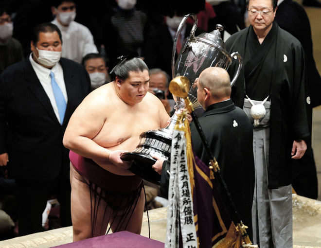 Abi, qui a failli arrêter le sumo à l’été 2020, a atteint le score de 12-3 dans deux tournois consécutifs et a reçu le prix de la Performance Exceptionnelle.
