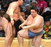 Yokozuna Hakuho (2-0) had some nervy moments against No. 1 maegashira Aoiyama (0-2) as the Bulgarian’s powerful push saw the Mongolian retreat initially toward the edge of the ring.