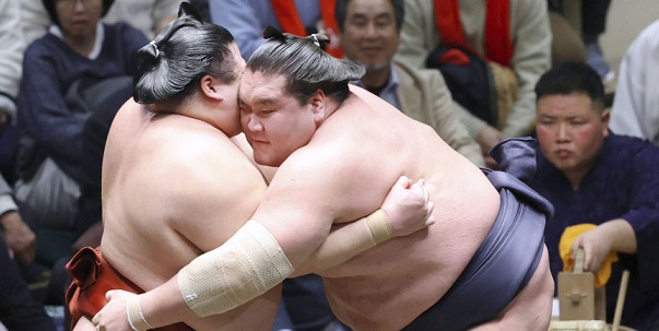 Après une défaite lors de la première journée contre le komusubi Wakatakakage, le yokozuna, en proie à des blessures, voulait désespérément éviter un début de tournoi sur un score de 0-2 pour son retour, après avoir manqué deux rencontres consécutives en raison de douleurs chroniques au genou et de symptômes de diabète. Il a neutralisé un solide tachi-ai de Takanosho et semblait prêt à une sortie rapide, mais l’ancien sekiwake a ramené l’action au milieu du dohyô avant que Terunofuji n’utilise un yorikiri pour éliminer son adversaire.