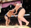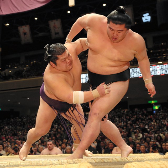Le troisième yokozuna Kakuryu semblait moins convaincant que lundi quand il a été repoussé sur les ballots de paille par Takarafuji. Le maegashira 2 n’est pas passé loin de la victoire avant que Kakuryu ne reprenne le dessus.