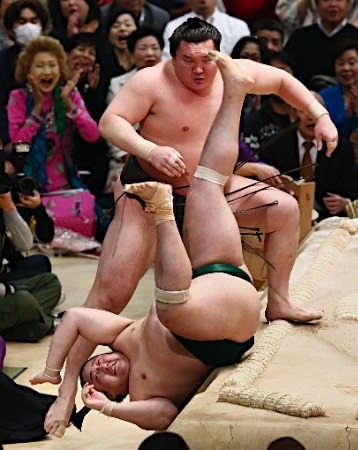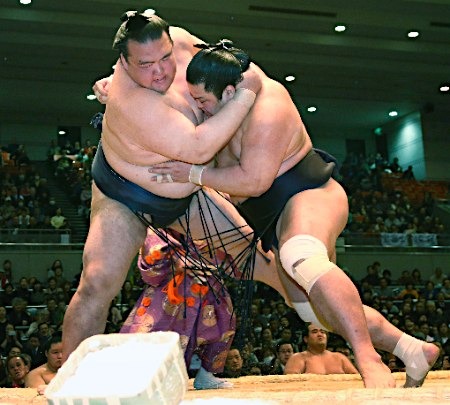 “It was good,” said Myogiryu, who hails from Hyogo Prefecture. “Before the tournament I trained against him and I was ready to go at full throttle. I want to put up good results in front of the local fans.”
