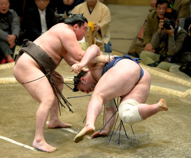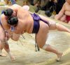 Hakuho let top maegashira Tochinoshin get inside for a belt hold, but waited for his chance and calmly tossed his Georgian opponent to the dirt at Tokyo’s Ryogoku Kokugikan for his second win of the competition. Hakuho is looking to win his 33rd Emperor’s Cup championship, a feat no other wrestler has ever accomplished.