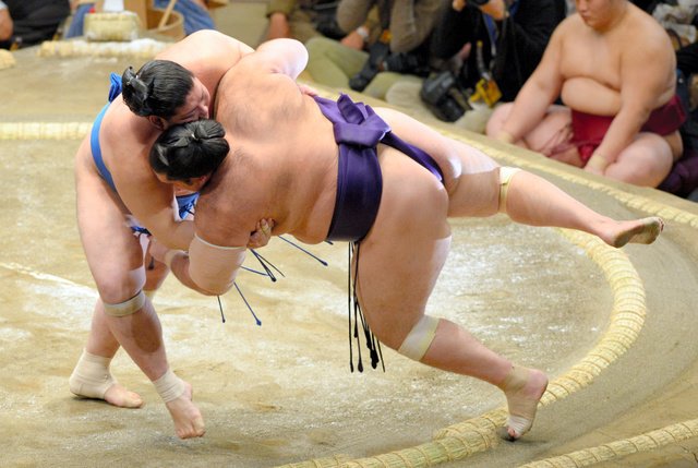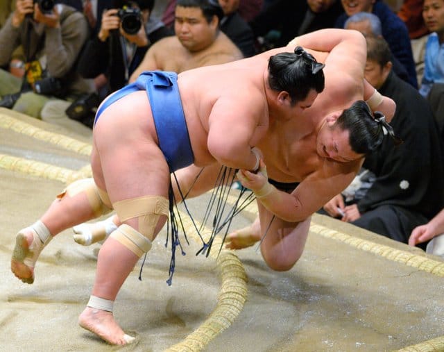 Yokozuna Harumafuji battered komusubi Takayasu into submission for his second win. Though he’s always a wildcard, Harumafuji looked great on opening day, and he was back in fine form for his second win. From the look on his face as he watched Takayasu fall from the ring, he is ready to show he is still a force to be reckoned with.