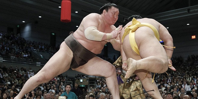 His sekiwake counterpart Takakeisho, meanwhile, stayed on track for a promotion to ozeki, sumo’s second-highest rank, with a win over No. 3 Nishikigi (0-2).