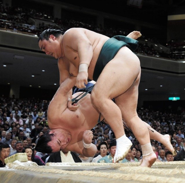 In other key bouts, Harumafuji (2-0), who is seeking back-to-back titles after winning the Nagoya meet, got a scare but took out No. 1 maegashira Yoshikaze (1-1) in an explosive encounter.