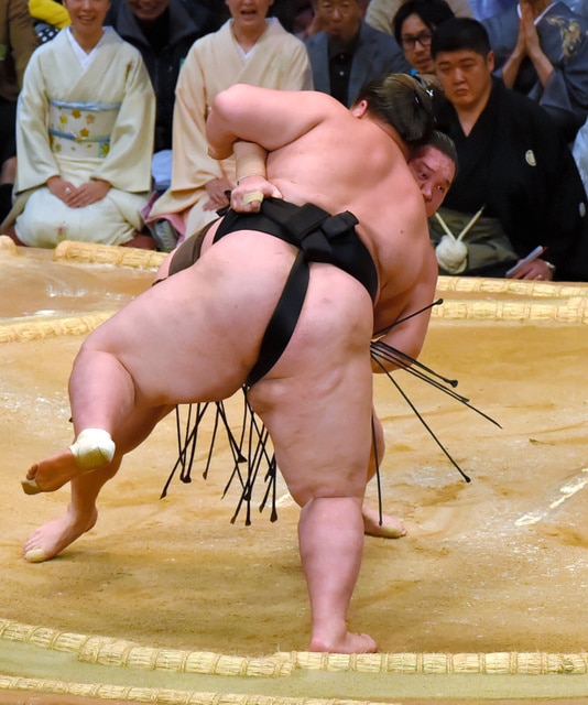 In other key bouts, Yoshikaze (2-0) claimed yet another huge scalp when he came from behind to outmuscle ozeki Kisenosato (1-1).