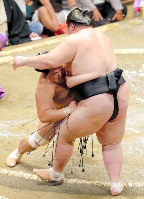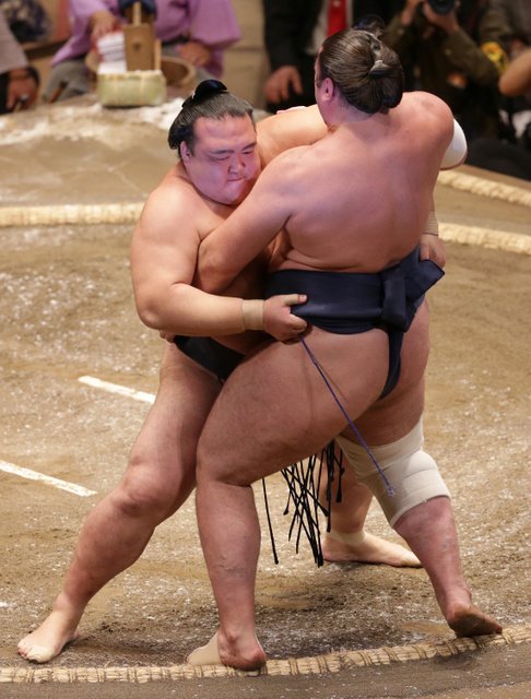 Goeido (1-1) was the lone ozeki casualty in a defeat to Takayasu, who picked up his first win. He got his right hand around but his left hand was left flailing as he was quickly escorted out when the No. 3 maegashira got both hands on the back of the mawashi.