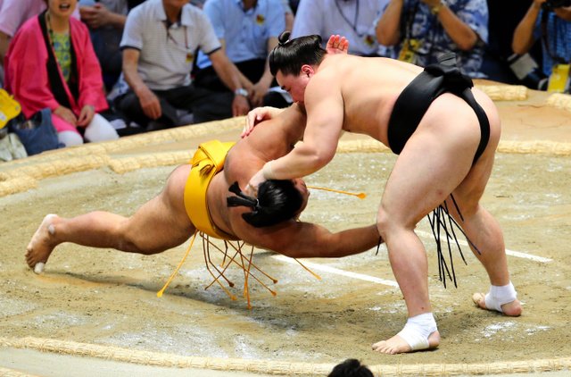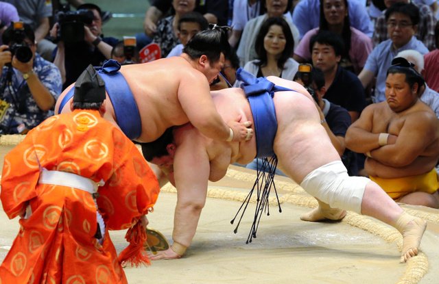 Avec les trois yokozuna et le relégable Kotoshogiku il ne reste déjà plus que huit lutteurs invaincus jusqu’à présent.