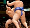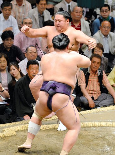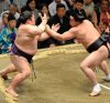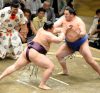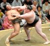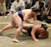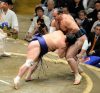 Osunaarashi a eu de la chance en remportant in extremis sa seconde victoire contre Myogiryu.