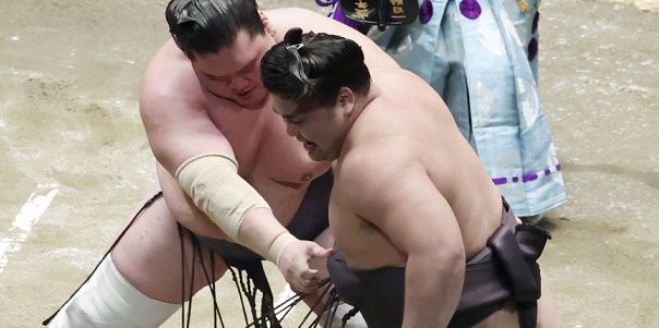 Hoshoryu, l’un des deux ôzeki qui peuvent obtenir une promotion au rang de yokozuna s’ils obtiennent le nombre de victoires nécessaire, a amélioré son score à 3-0. Le neveu de l’ancien yokozuna Asashoryû a dominé Wakatakakage dès le départ, le balançant vers le haut avec son tachi-ai avant de délivrer un barrage de gifles et de coups à la base de la gorge qui ont poussé le komusubi chancelant hors du dohyô.