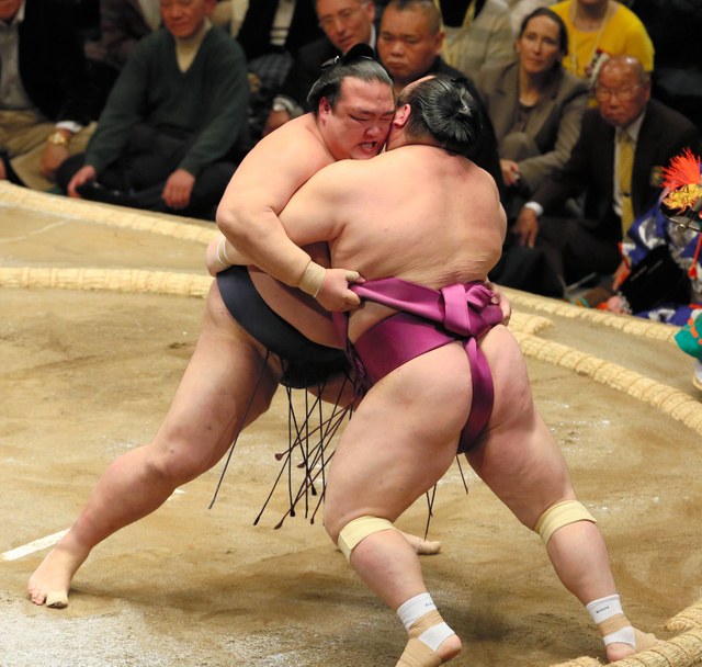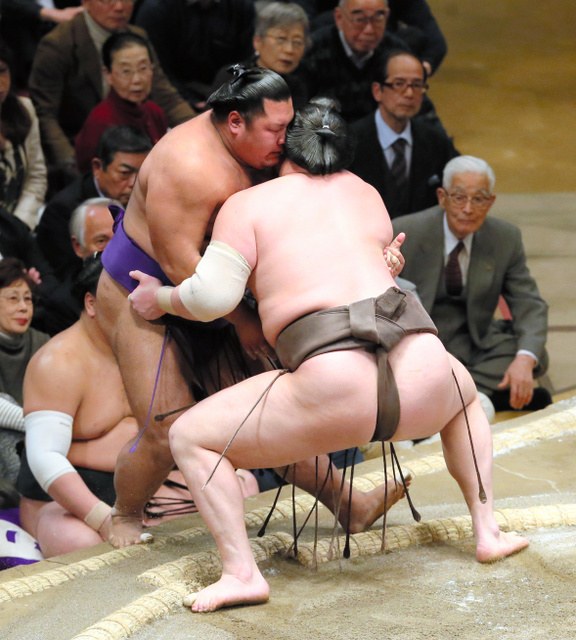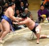 Kisenosato won his second-straight match since suffering an opening-day upset. The longtime ozeki holding off winless No. 2 maegashira Takarafuji in a straight-forward frontal forceout to improve to 2-1 for the tournament, and 9-1 in his career against Takarafuji.