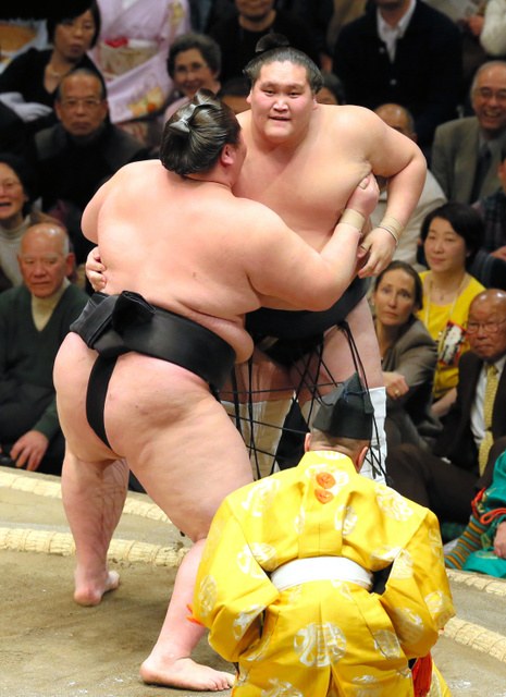 « I’m pretty happy (about the first win), » said Tochinoshin, who will face Kisenosato on Wednesday. « I just wanted to keep pushing forward. I’ve got a lot of work ahead of me and I’m going to have to give it my best.