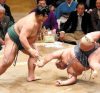 Kisenosato a gagné son deuxième match consécutif depuis qu’il a subi un bouleversement lors de la journée d’ouverture. L’ôzeki a déployé toute sa force pour battre le maegashira 2 Takarafuji.