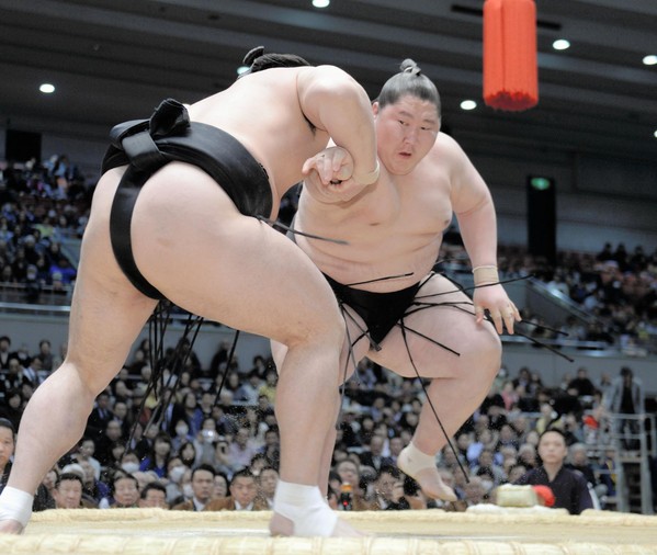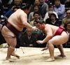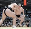 Earlier, rising star Endo blasted out Tokushoryu (1-2) to the elation of the Osaka fans to improve to a 2-1 mark.
