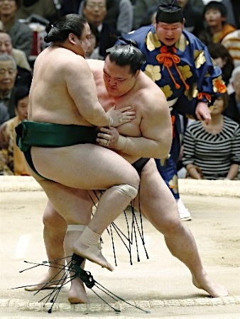 Harumafuji lost steam after an ineffectual chokehold as he tried to slap the No. 1 maegashira forward, only to lose his balance before being abruptly knocked off his haunches at the edge of the ring.